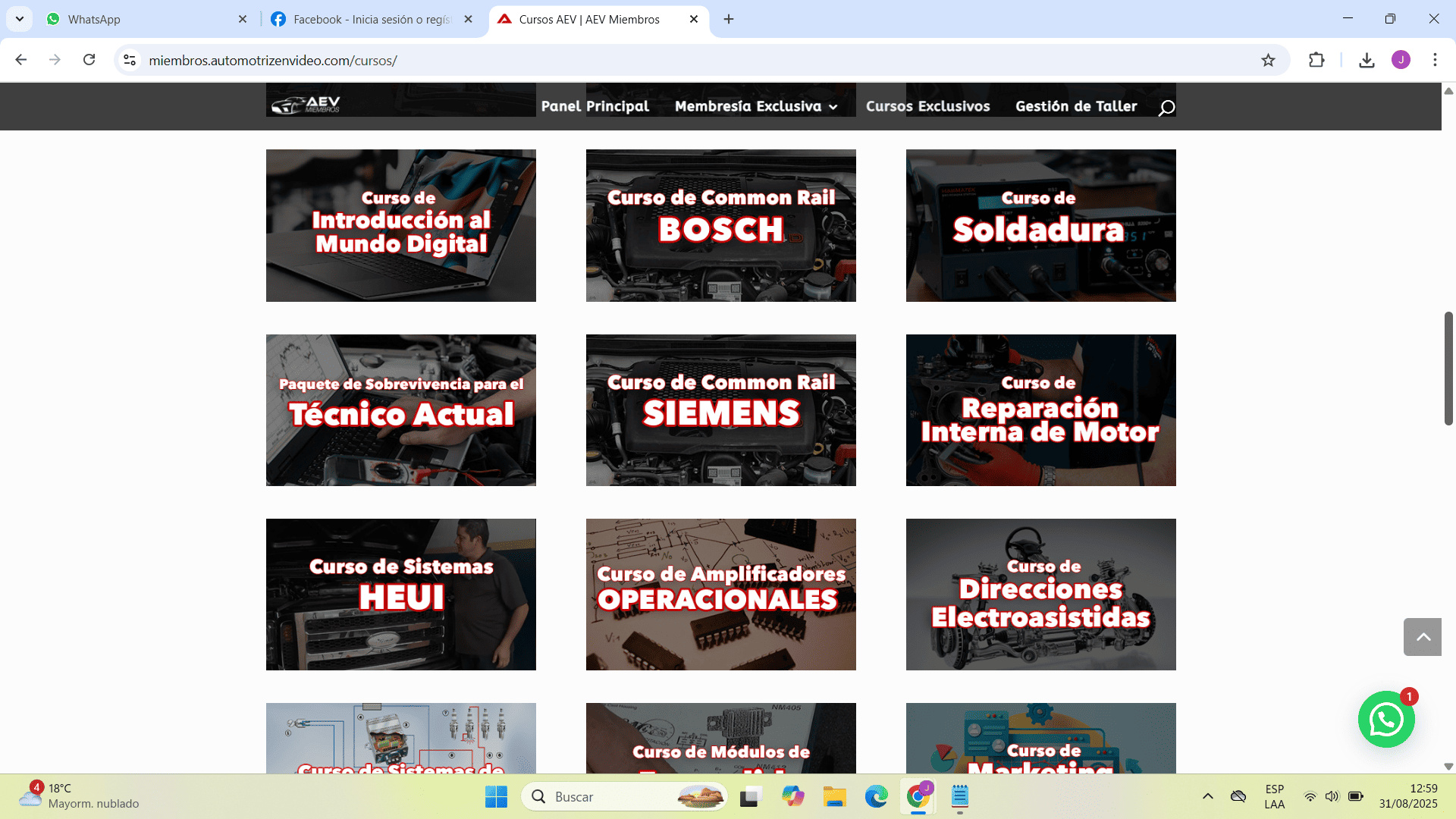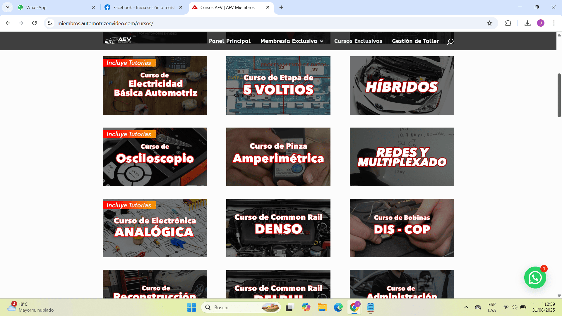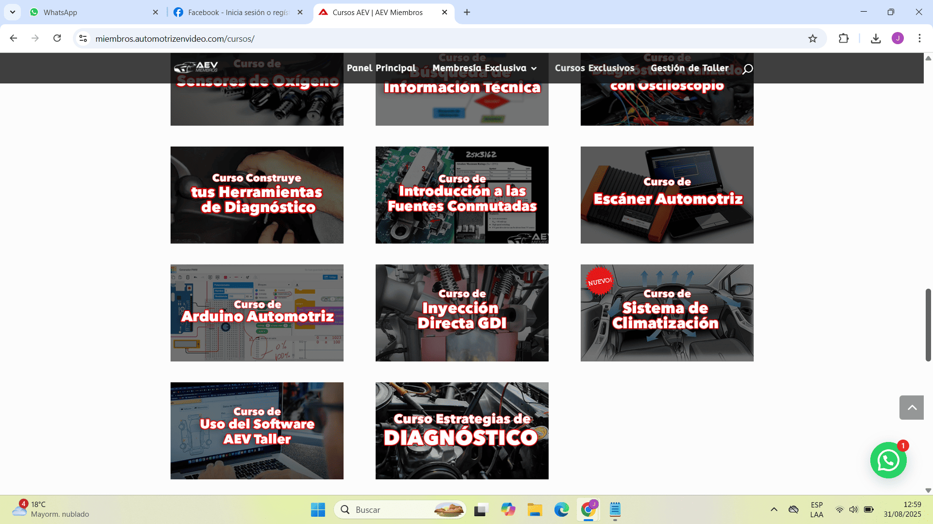 ✓ 40+ Cursos de Capacitación en Video: ELECTRICIDAD Y ELECTRÓNICA AUTOMOTRIZ, INYECCIÓN GDI, VEHÍCULOS HÍBRIDOS, COMMUN RIEL HEUI, DELPHI, DENSO, BOSCH, SIEMENS, OBD2, PINZA AMPERIMÉTRICA, OSCILOSCOPIO, ENCENDIDO ELECTRONICO, BOBINAS DIS-COP, AMPLIFICADORES OPERACIONALES, MÓDULOS DE ENCENDIDO, PROTOCOLO SAE J2610, REDES VAN , REDES MULTIPLEXADAS, PCI BUS, LIN BUS , REDES CAN, MONOALAMBRICOS, FLEX RAY, AVC LAN, ELECTRÓNICA ANALOGICA, SCANNER AUTOMOTRIZ, SENSORES DE OXÍGENO, DIRECCIONES ELECTROASISTIDAS, REPARACIÓN DE MOTOR, TINKERCAD, MARKETING PARA TALLERES, CRECIMIENTO EMPRESARIAL, ADMINISTRACIÓN DE TALLER Y MÁS.