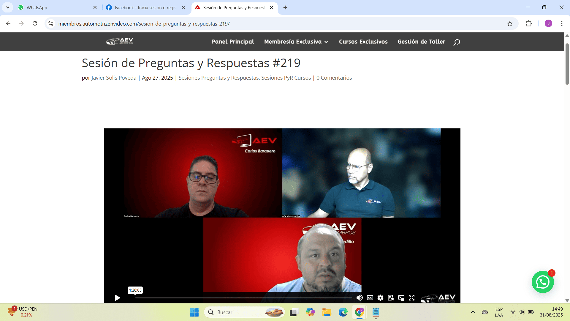 Soy electrónico automotriz, buscaba una plataforma donde brinden una capacitación buena de cursos automotrices y la encontré; estoy agradecido que los profesores nos acompañen en el zoom y que las sesiones se queden grabadas. Me encantaría que haya un descuento si renuevo 2 meses más porfavor.